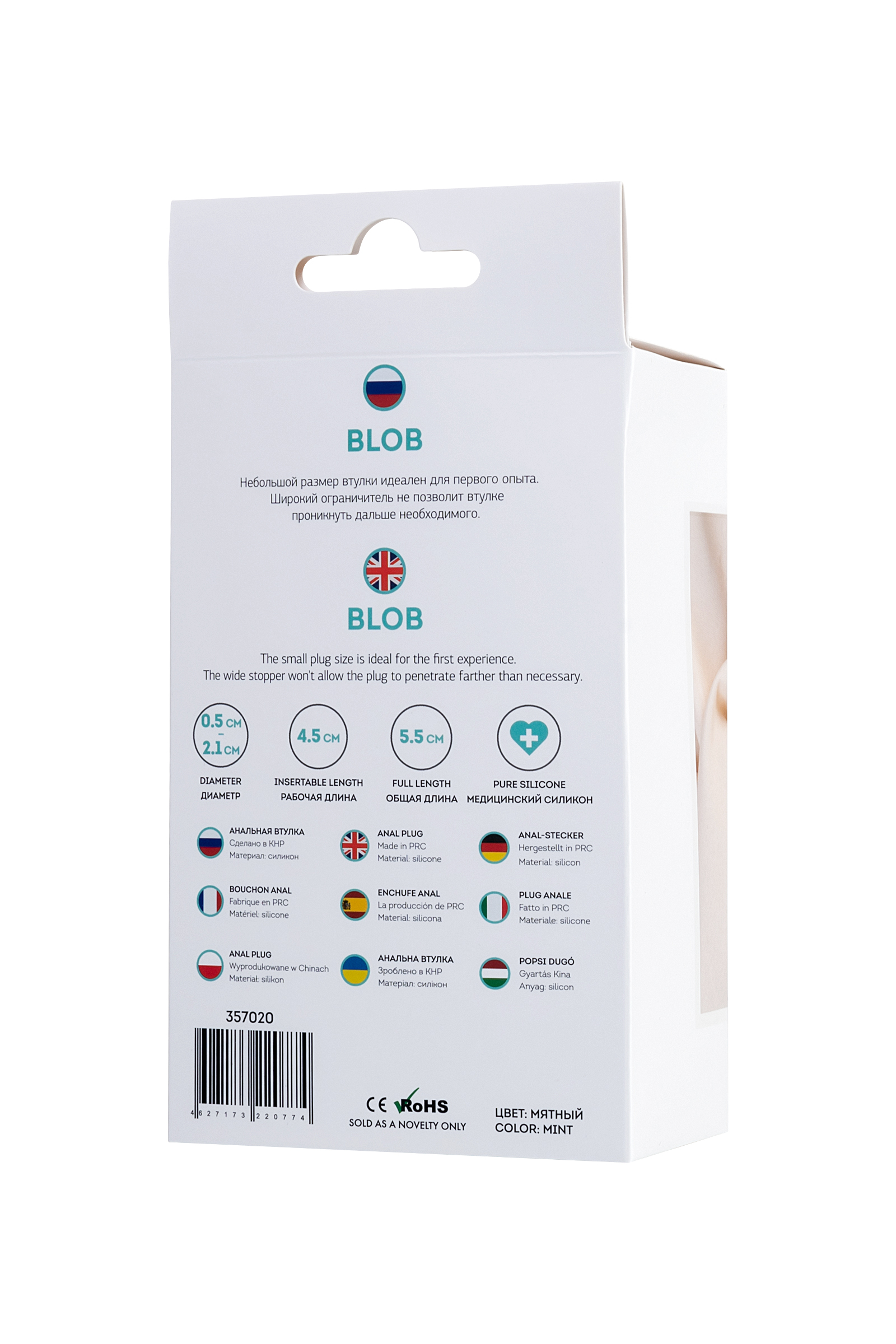 Blob Небольшой размер втулки идеален для первого опыта. Широкий ограничитель не позволит втулке проникнуть дальше необходимого. Рекомендуем использовать до и после применения - дезинфицирующее средство для игрушки, чтобы обеспечить длительное скольжение и комфорт интимных отношений, рекомендуем использовать анальную смазку на водной основе. Хранить при температуре не выше 35 градусов, избегать попадания прямых солнечных лучей.