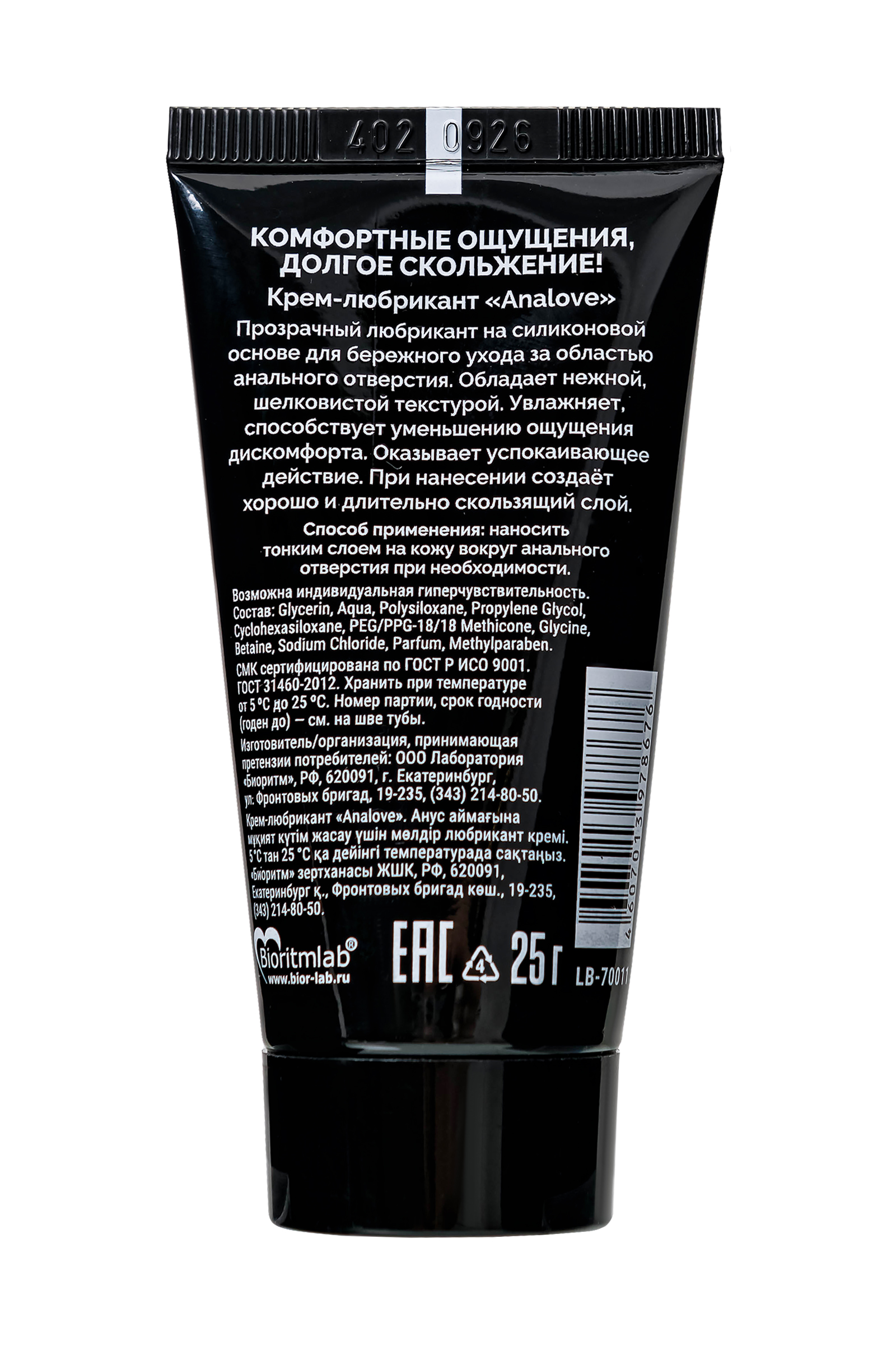 Анальная силиконовая смазка с обезболиванием. Прозрачная. Обеспечивает супердлительное скольжение. Применяется для комфортных интимных отношений без болевых ощущений и неприятных последствий в виде потертостей, трещинок и ссадин. Суперэкономична в использовании: супердлительна по действию (не впитывается и не высыхает, обеспечивая длительное скольжение), гипоаллергенна (химически инертна, не взаимодействует с кожей и слизистыми), не содержит в своем составе жиров, минеральных и растительных масел, обладает охлаждающим действием - минимально влияет на рН и микрофлору половых органов, не оставляет следов на белье, легко отстирывается, полностью совмещается с латексными и полимерными материалами (презерватив, вибратор, фаллоимитатор, вагинальные шарики и другие игрушки).