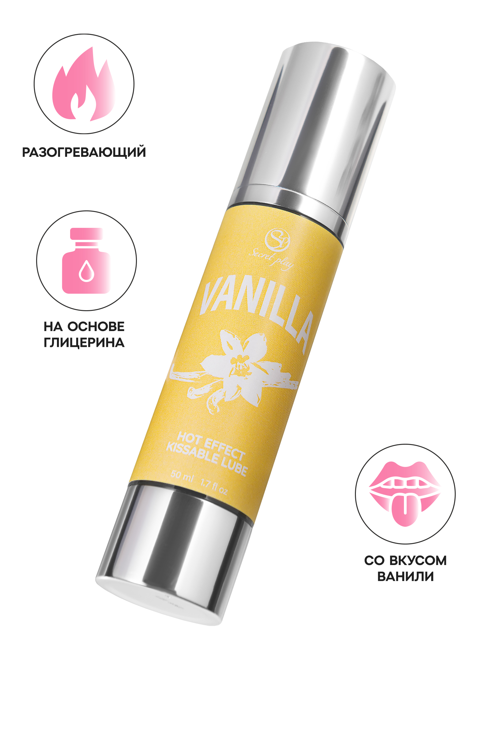 Vanilla Hot Effect — это массажное масло 2 в 1 от испанского бренда Secret Play, которое откроет для вас новые грани наслаждения. Его разогревающий эффект и чувственный вкус ванили созданы, чтобы превратить ваши интимные моменты в страстное и незабываемое путешествие. Это универсальное средство добавит тепла и нежности к любым ласкам, идеально подходя для чувственного массажа, оральных игр и прелюдий, которые плавно переходят к проникновению. Масло делает прикосновения невероятно мягкими и приятными, его текстура буквально тает на коже, создавая ощущение легкого тепла, которое усиливает возбуждение и пробуждает чувственность. Попробуйте нанести его на шейку, нежно пройдитесь по ключицам, остановитесь на сосках — и наслаждайтесь тем, как каждый поцелуй и прикосновение становятся более насыщенными и горячими. Его ванильный аромат и вкус наполняют атмосферу сладким предвкушением и создают волнующее настроение, помогая расслабиться и настроиться на волну удовольствия. Vanilla Hot Effect — это больше, чем просто массажное масло: это средство для создания близости и интимности, которое идеально подходит для массажа, прелюдий и оральных ласк. Позвольте его нежному теплу и сладкому аромату ванили разогреть ваши чувства и настроить на волну страсти Вкус: ваниль Глицериновая основа Используется как массажное масло и смазка Объем: 50 мл Без сахара и глютена, подходит для веганов Универсальное использование на всех эрогенных зонах НЕ совместимо с презервативами и секс-игрушками Состав: Глицерин, вода, ароматизатор, сахарин натрия, карамель. Способ применения: Обильно нанесите масло на желаемый участок тела и аккуратно помассируйте. Используйте для массажа, прелюдии и оральных ласк, позволяя ванильному аромату и вкусу создать атмосферу чувственности. Меры предосторожности: Не использовать при повышенной чувствительности или аллергии на ингредиенты При раздражении прекратить использование Не наносить на область глаз или открытые раны Не глотать Хранить в недоступном для детей месте, вдали от солнечных лучей