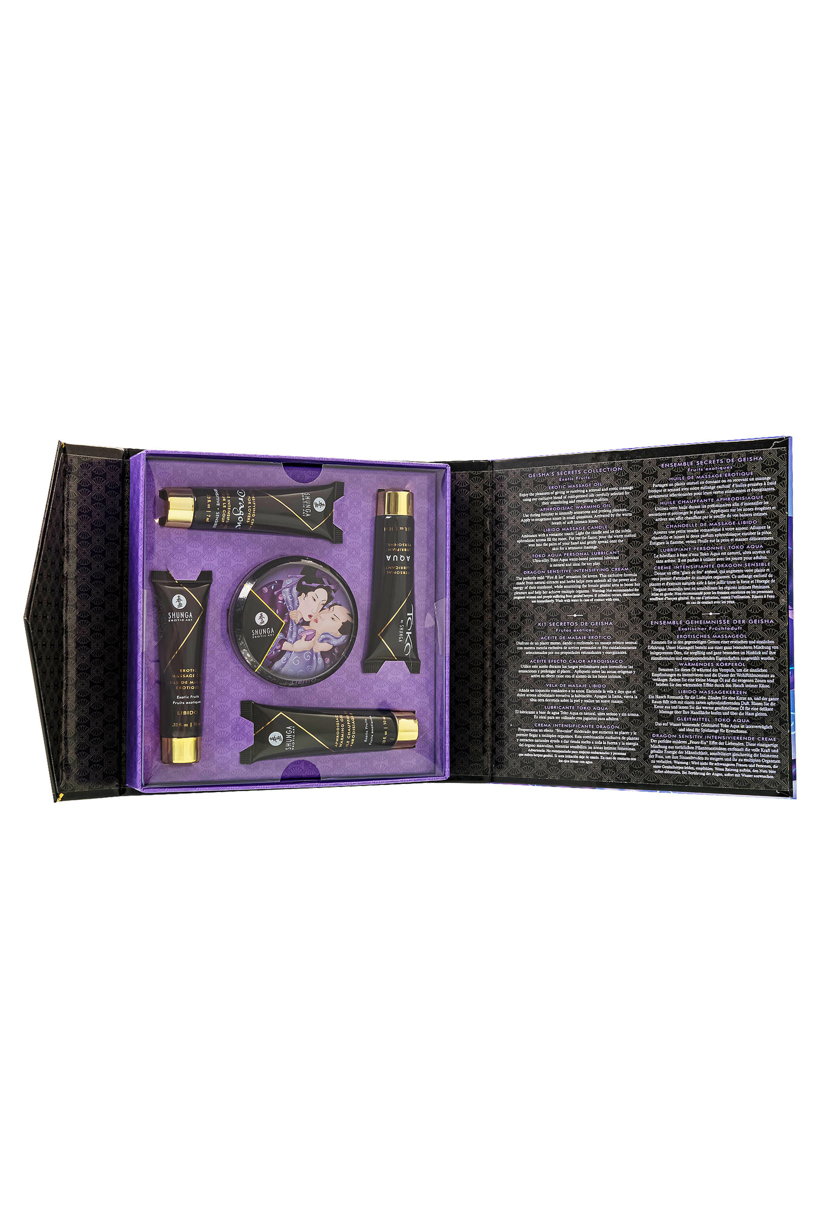 Погрузитесь в мир чувственных наслаждений с набором GEISHAS SECRET от бренда Шунга Экзотические фрукты — идеальный выбор для тех, кто стремится к новым ощущениям и ярким оргазмам. Этот набор из пяти предметов наполнен экзотикой и страстью, предлагая уникальные продукты для романтических экспериментов. Масло для эротического массажа Экзотические фрукты – 10 мл Нежное и шелковистое, это масло подарит вам мягкость и удовольствие во время массажа. Его экзотический аромат усиливает возбуждение и желание, а натуральная формула не оставляет жирных следов на коже, обеспечивая безупречное скольжение. Идеально для чувственных прикосновений и ласк, но не предназначено для приема внутрь. Согревающее масло-афродизиак для поцелуев Экзотические фрукты – 10 мл Это съедобное масло с разогревающим эффектом создано для того, чтобы сделать ваши моменты еще более интимными. Прикосновения к коже с этим маслом, усиленные теплом вашего дыхания, вызывают невероятное наслаждение. Вкус экзотических фруктов добавит страсти и сделает каждый поцелуй незабываемым. Мини-массажная свеча Экзотические фрукты – 30 мл Эта уникальная свеча из натуральных масел при горении превращается в теплое массажное масло, даря коже мягкость и питательность. Воск не содержит токсинов и безопасен для кожи. Свеча наполняет пространство ароматом экзотических фруктов, добавляя романтики в атмосферу, и создает идеальные условия для расслабляющего массажа. Лубрикант на водной основе TOKO AQUA – 10 мл Лубрикант на водной основе с ультра-шелковистой текстурой и нежным фруктовым вкусом, который не оставляет послевкусия. Идеален для длительного скольжения и совместим с латексными изделиями. Без сахара и без пятен, TOKO AQUA — идеальный спутник для романтических и страстных моментов. Стимулирующий крем DRAGON SENSITIVE – 7 мл Этот крем создан для усиления ощущений и придания вашим интимным моментам новизны. Эффект огня и льда чередует согревающие и охлаждающие ощущения, делая каждый контакт незабываемым. Формула на основе натуральных ингредиентов безопасна для чувствительной кожи и дарит длительное удовольствие. Набор GEISHAS SECRET Экзотические фрукты станет великолепным подарком для вашего партнера или увлекательным способом открыть для себя мир продукции Shunga. Идеально подходит для романтических путешествий и незабываемых интимных вечеров.