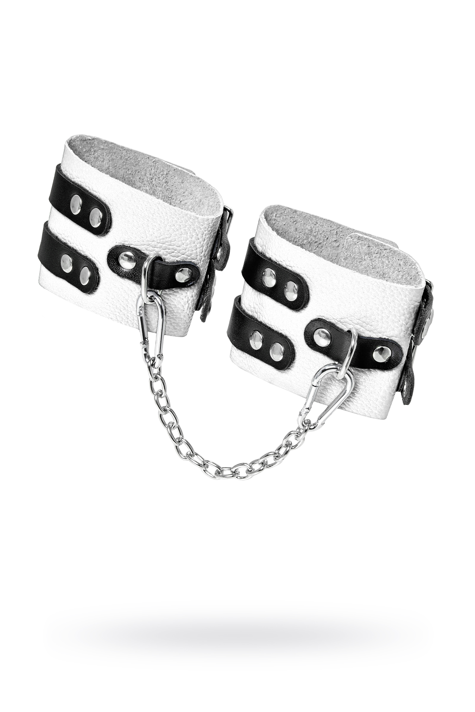 Мягкие оковы с двумя жёсткими ремешками от Pecado помогут обездвижить партнера во время сексуальных прелюдий или жестких БДСМ-играх. Оковы изготовлены полностью из белой, натуральной кожи. Ремешки выполнены из чёрной жёсткой кожи, украшены люверсами. Выделка материала произведена вручную. Ремешки и широкая манжета хорошо держат форму: не тянутся и не мнутся. Качественная металлическая фурнитура добавляет лоска изделию, а аромат натуральной кожи повышает градус возбуждения. Благодаря широкому запасу регулировок, можно подобрать необходимый обхват. Аксессуар удобно застегивать и легко расстегивать. При правильном использовании не оставляет следов на теле и не доставляет дискомфорта. Манжеты оков соединяются между собой помощью двух карабинов и съемной стальной цепочки. Подходит и для женских, и для мужских ног.Ручная работа.Износостойкий, тактильно приятный материал. Надежная высококачественная фурнитура.Универсальный размер.Длина сцепки - 20см