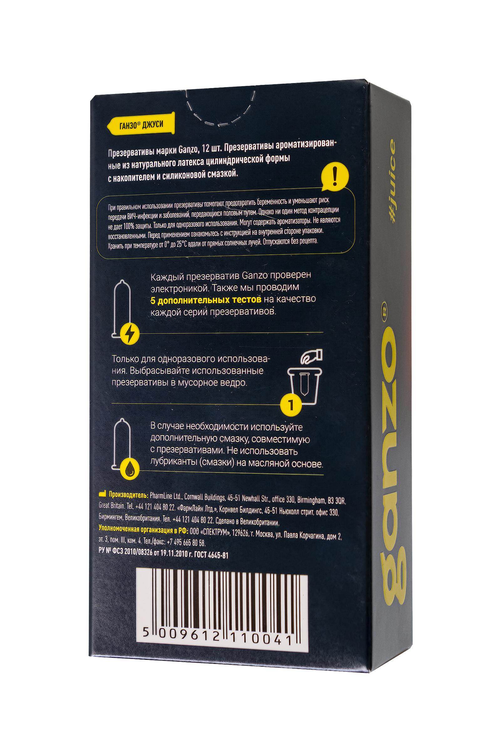 Презервативы Ganzo, ultra thin, супер тонкие, латекс,18 см, 5,2 см, 12 шт.
