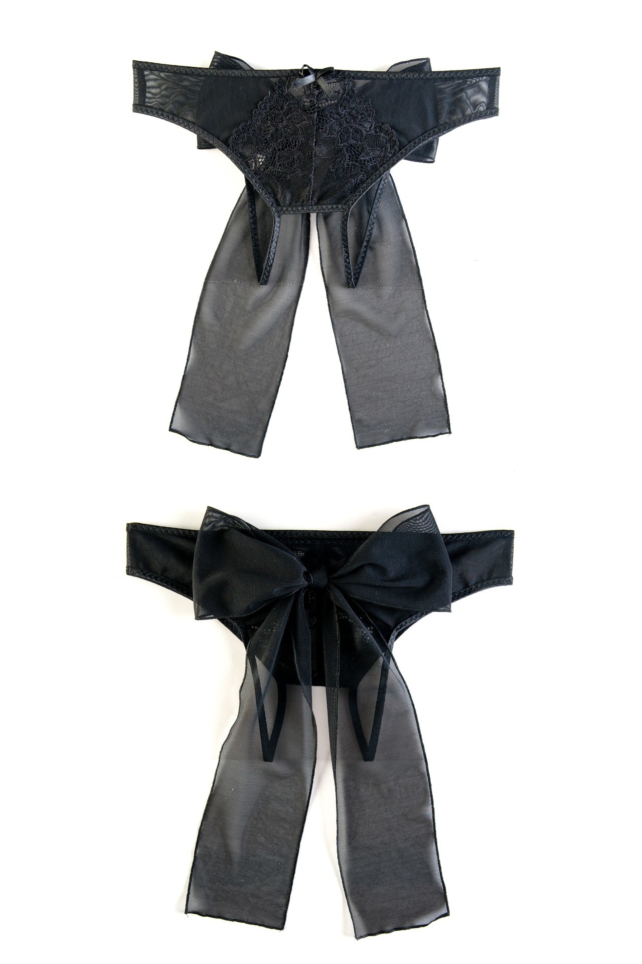 Эротические трусики из стрейч-сетки, эластичные, с кружевной вставкой и атласным бантиком спереди. В нижней части эротичный вырез. Трусики идеально облегают бёдра, эффектно подчёркивают красоту и женственность изгибов фигуры. Идеальный подарок для страстной ночи!