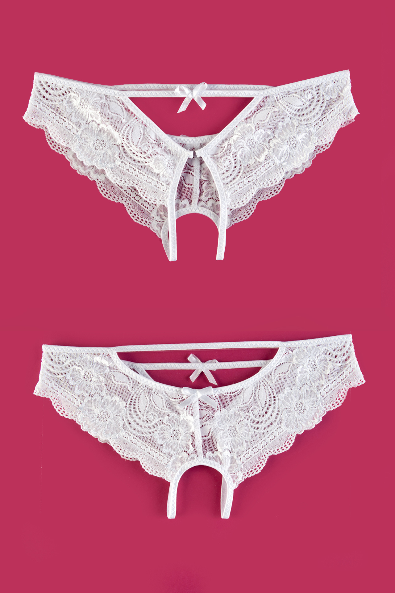 Эротические трусики кружевные, эластичные, декор: миниатюрное колечко и атласные бантики, свободный кружевной край.
